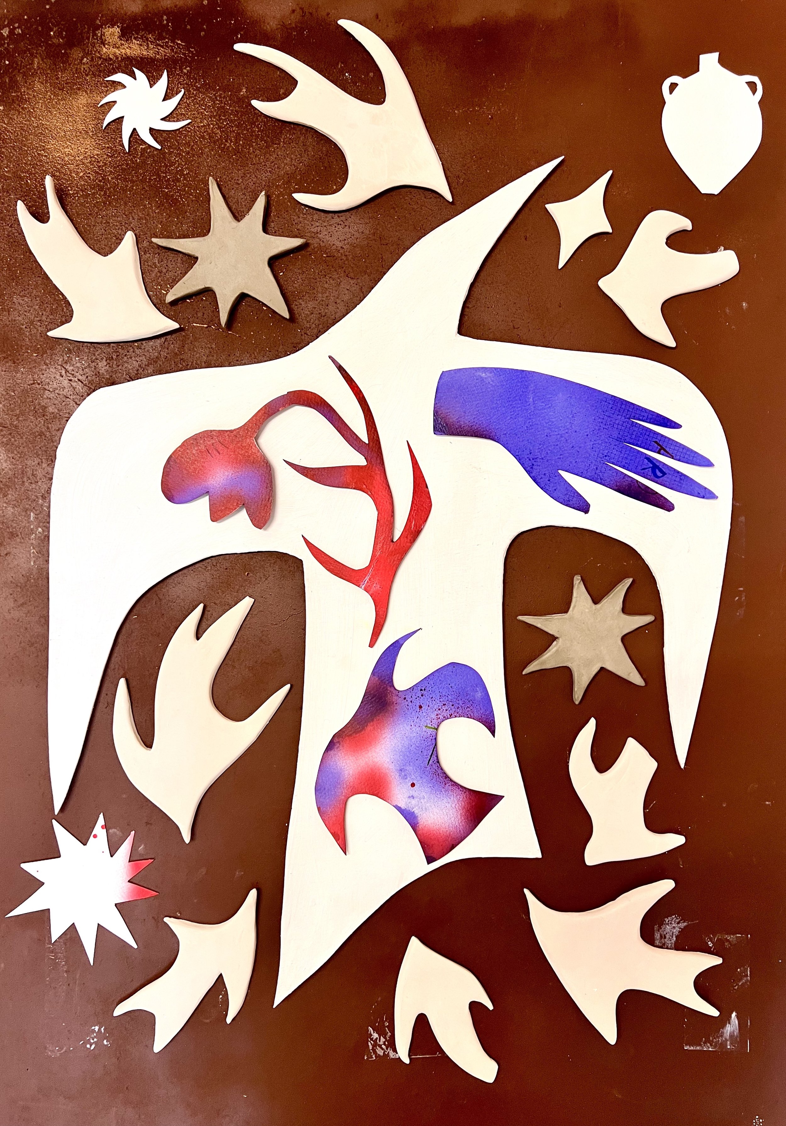 This residency will allow me to continue to deliver further on scale in a structured environment; extending this logic from the object into the room; exploring how vessel forms may become environments to be entered, navigated, or partially obscured. Accompanying these vessels, I work with a recurring symbolic language, birds, hands, suns, flora, fauna. These elements behave as scaled-back representations of core memories, often shared in liminal state, recurring across different media. A core theme of the work is on migration and dual identity; from one place to another, always feeling like a foreigner or an outsider. In this aspect, I am the vessel and I am in two places at once. This is aided through symbolic context, particularly through birds as figures of movement and orientation, and houses as provisional shelters. This repetition creates a visual system that feels familiar and nostalgic, with an underlying feeling dislocation and instability.