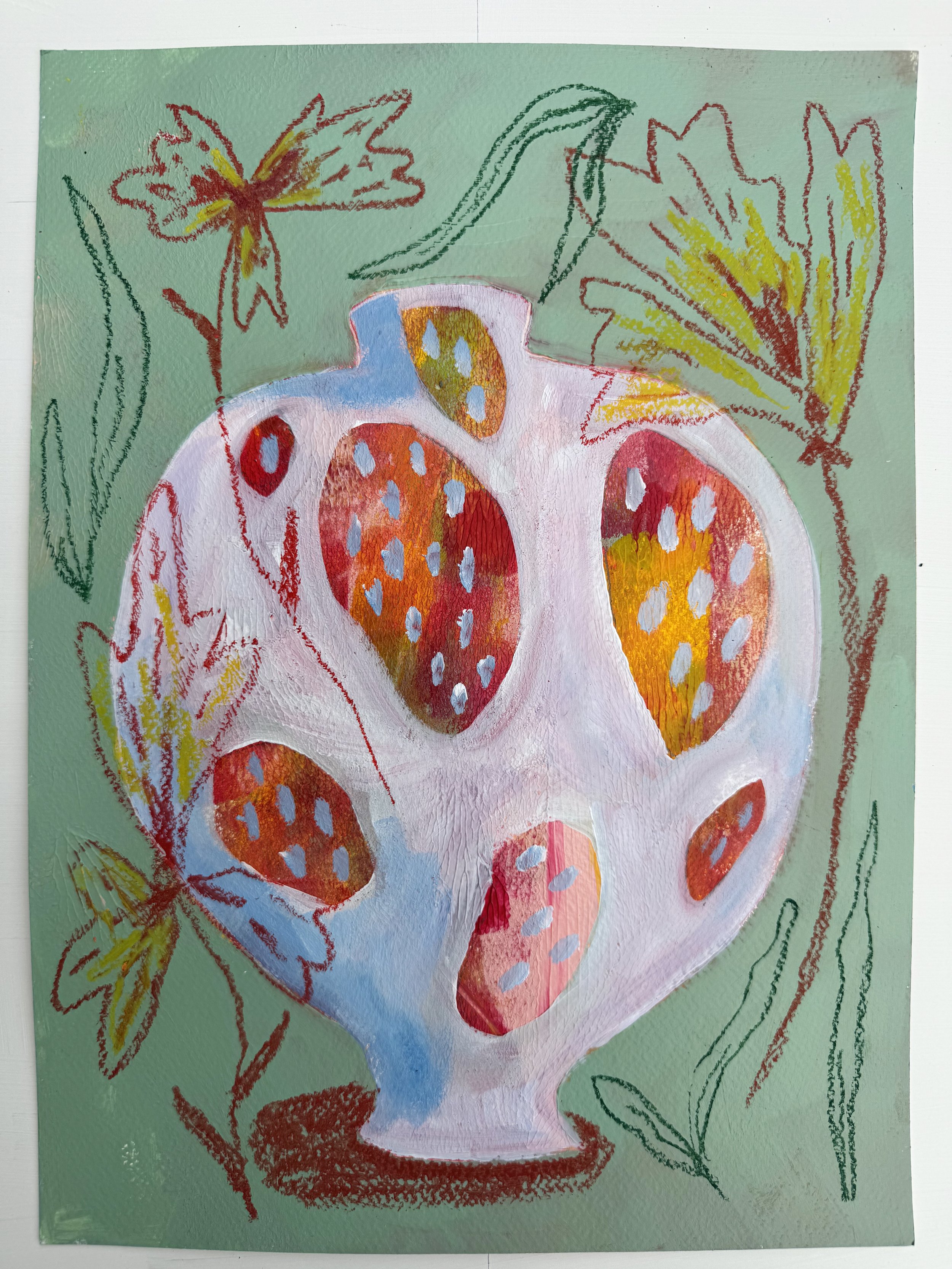 Vessels have long formed the conceptual and visual core of my work; vases and house like forms recur as central structures, often distorted with pockets or apertures that nod to interior worlds.These forms are designed to convey transitional spaces rather than the limitations of fixed objects. Memory associated to an object bleeds through and alters his form. They demonstrate tension between the known and the withheld.